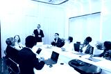 Group of diverse businesspeople at conference, happy business workers discussing and brainstorming together at meeting room. Cheerful officers exchange ideas and listen to presentations during meeting