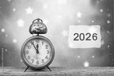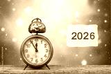 Timeless Countdown: Rustic Alarm Clock Striking Five to Midnight for New Year 2026