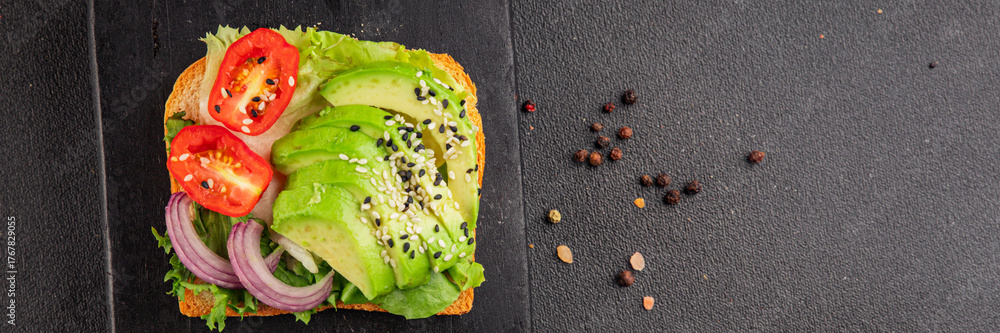 Avocado toast vegetable dish natural product tasty snack fresh delicious gourmet food background on the table rustic top view copy space keto and paleo diet vegan and vegan food