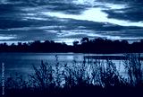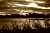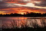 Jesienny, pomarańczowy wschód słońca nad stawem, tapeta.