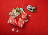 Packing Christmas gifts with red and brown paper