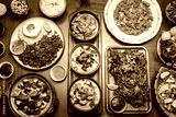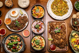 mixed traditional cuisine popular thai food dishes on bangkok restaurant table