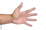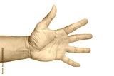 PNG file An open human hand against a blurred background, fingers spread wide on transparent background PNG