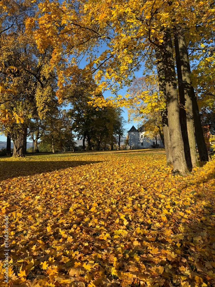 Panorama of a sunny day, wide banner, panoramic view. travel vintage perspective outside shine photo warm illuminated central forrest shade country footpath september branch destination peaceful alle
