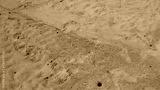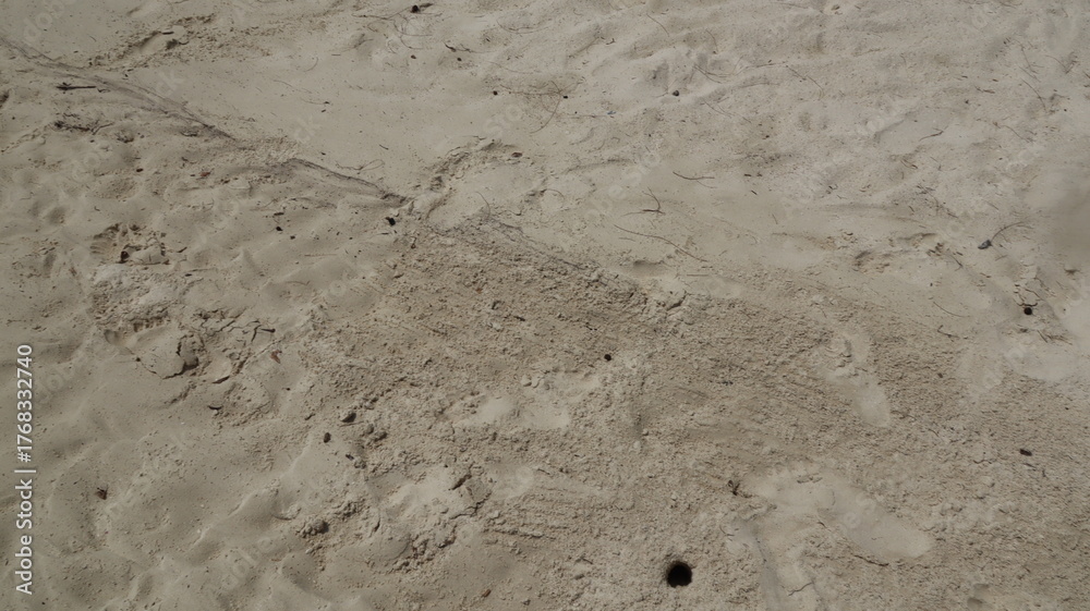 Sand ripples across a beach creating a textured landscape on a sunny day, showcasing nature's artistry and the beauty of coastal environments.