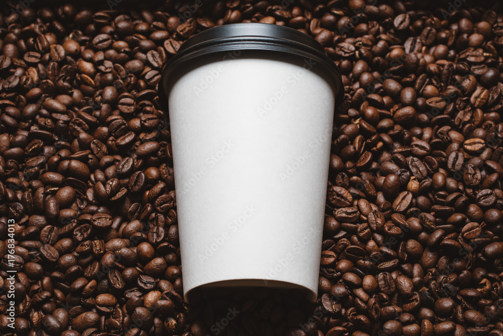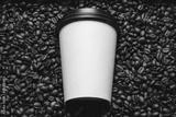 Mockup of coffee beans with white paper cup.