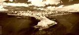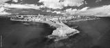 Italy , Tuscany tourism scenic places and coastal towns - charming Piombino in Livorno province. aerial drone panoramic view with lighthouse and old town