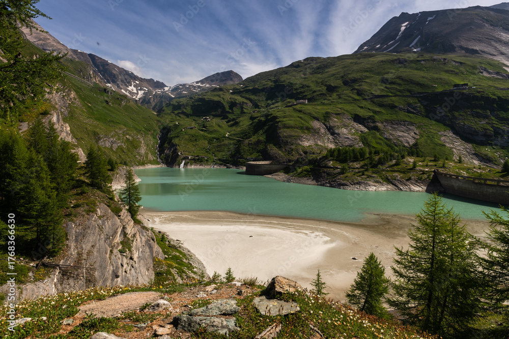 Scenic Glacier Lake and Mountain Hiking Path at Grossglockner, Austria