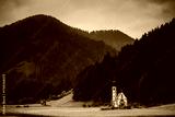 Colorful Fall Foliage Surrounding St. John Church in the Dolomites
