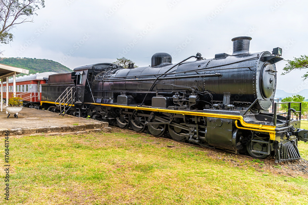 A view across an old steam train in the zululands in South Africa in Springtime