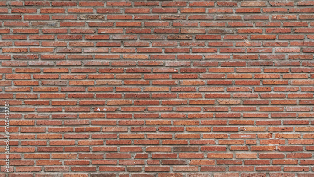 Texture of a red brick wall background. Vintage masonry surface made of rectangular bricks and gray cement, perfect for architecture design, construction, and urban texture concepts.