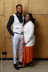 Happy African couple man and woman hugging