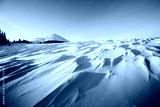 Frosty winter weather creates a snowy, wavy surface formed by the wind on a frozen slope.