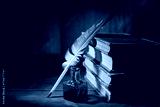 Old antique books with feather and ink bottle on old wooden table. Feather for calligraphy, old education, vintage still life