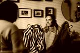 Puzzled Woman Asking her Friend What to Wear. Undecided lady trying to find something to wear at a party