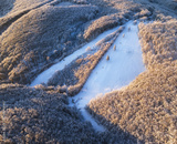 Fantastic sunrise in the mountains. Fresh snow covered slopes and fir trees in Carpathian mountains, Slovakia, Europe. Ski tour on untouched snowy hills. Beauty of nature concept background