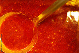 The barbecue sauce is rich and spicy, with a focus on chili.