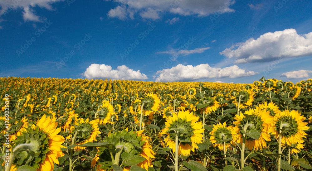 field of sunflowers against blue sky