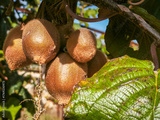 Kiwifruits on a branch inside a greenhouse, Erdemli Region, Mersin, Turkey