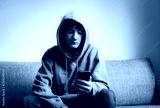 Cyberbullying, negative in social media online issue in teenager. Upset teen boy sitting near window using smartphone at home.