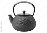Isolated Japanese tetsubin tea kettle for preparing and serving tea or herbal drinks well aged