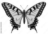 Isolated butterfly, colorful wings, Papilio glaucus, bright yellow insect with black markings