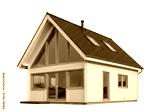 Isolated house featuring an A-frame roof and contemporary design with natural daylight