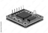 Isolated electronic circuit board with integrated circuits and pin connectors in studio light