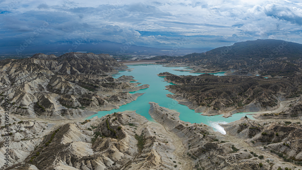 Aerial view of the Gebas ravine and the Algeciras reservoir in the Region of Murcia, Spain
