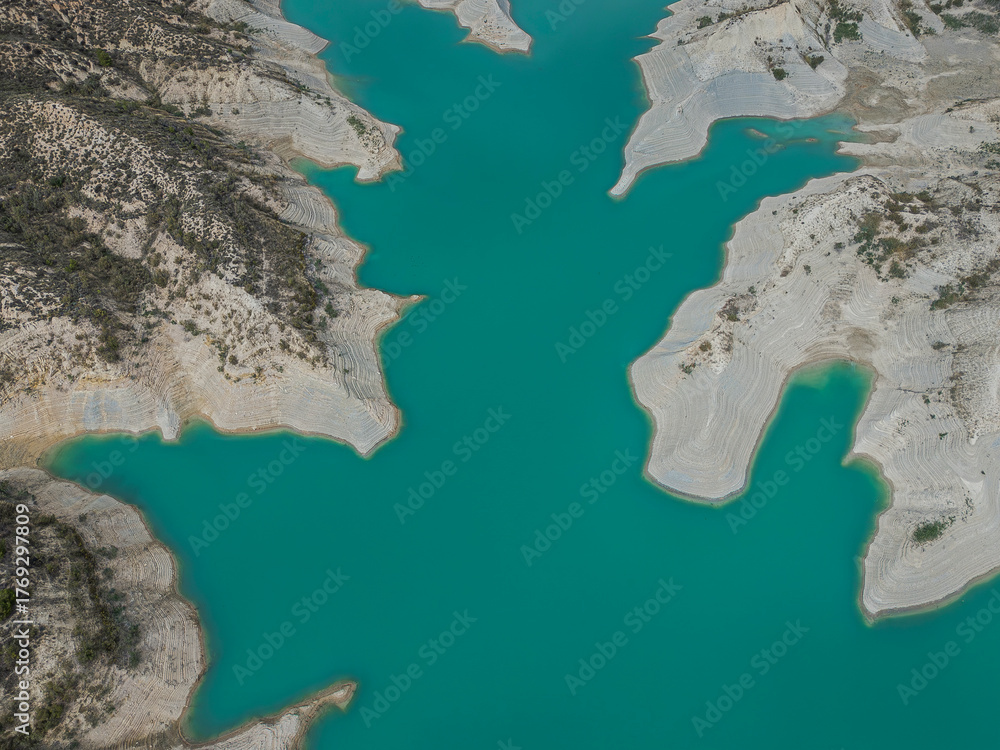 Aerial view of the Gebas ravine and the Algeciras reservoir in the Region of Murcia, Spain