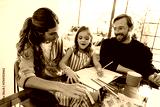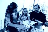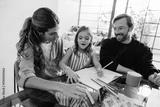 Family drawing session with mom, dad, and daughter