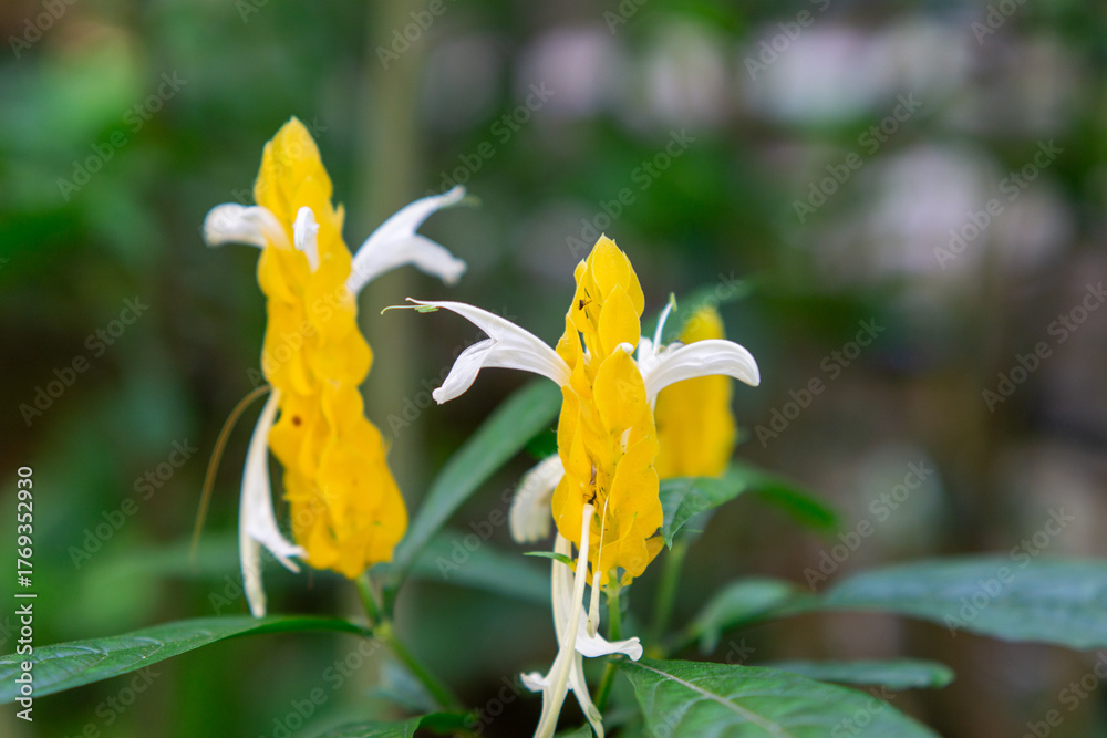 Pachystachys lutea (golden shrimp plant, lollipop plant, bunga lilin, kembang lilin, udang emas, Air mancur). This plant has uses for various ailments like fever, colds, and pneumonia.