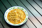 Mie nyemek. An Indonesian noodle dish cooked with a little water, beaten egg, and thick sauce.
