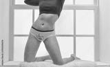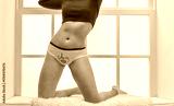 Comfortable and stylish women's underwear: a coral lace-trim brief and a white cotton thong, emphasizing natural curves and cozy settings.