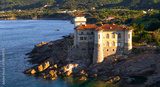 one of the most beautiful and romantic castles in Italy - Castello di Boccale located on the rocks of Tyrrenean sea near Livorno in Tuscany