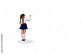 Composite photo collage of happy schoolgirl draw board chalk geek education pupil autumn study learner isolated on painted background