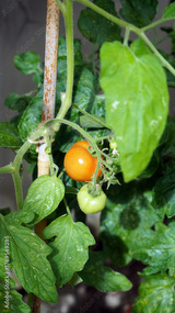 Sunlit Tomatoes ripening in a greenhouse, Cumbria, England
