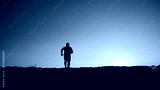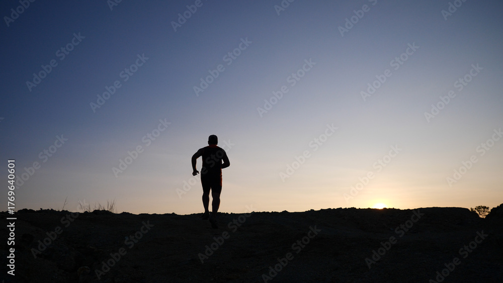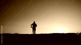 Silhouette of a lone runner against a vibrant sunrise. The runner is depicted as a dark shape, with the sunrise forming the backdrop