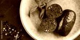 Black pudding blood sausage dish natural product tasty snack fresh delicious gourmet food background on the table rustic top view copy space