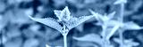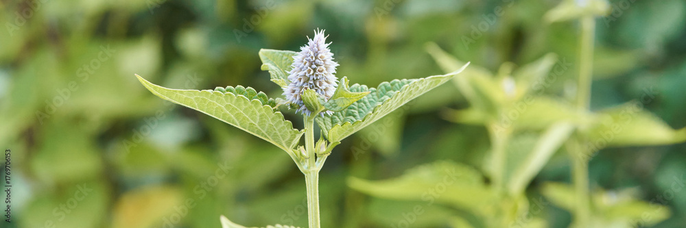 Close-up of flowering plant with spiky purple bloom and green leaves in nature.