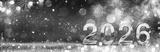 2026 New Year Celebration - Golden Number And Fireworks At Blue Eve Night In Abstract Defocused Lights