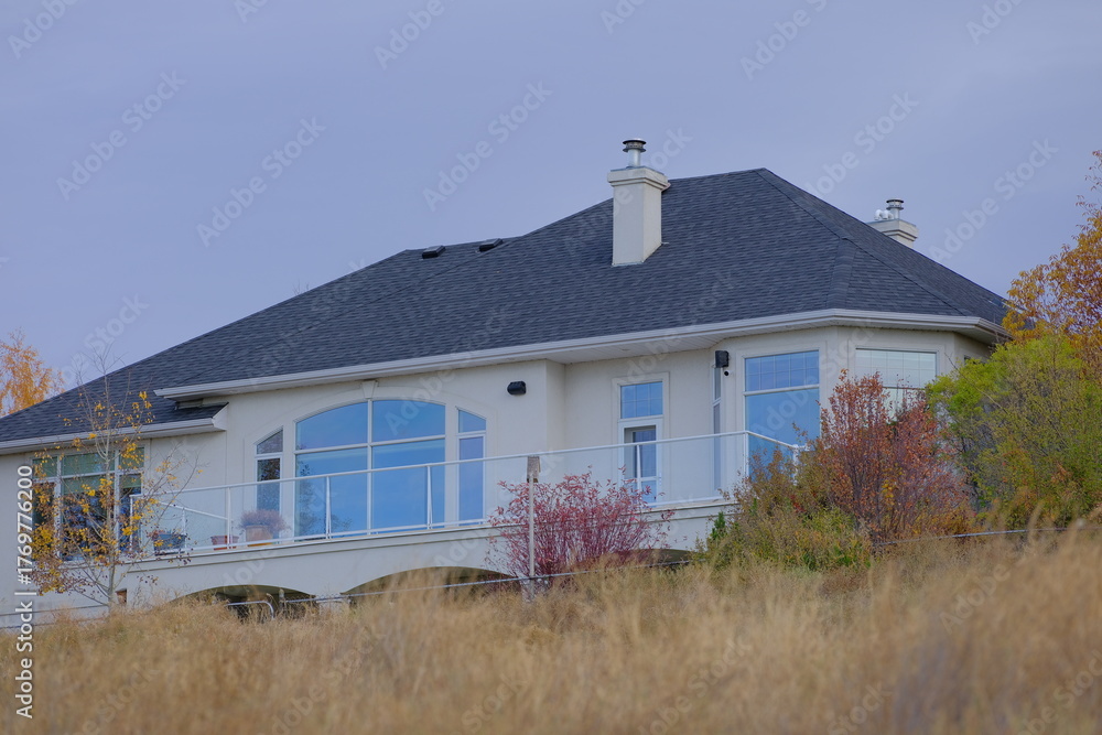 house in the woods, home, architecture, window, outdoors, landscape, Canada, Alberta