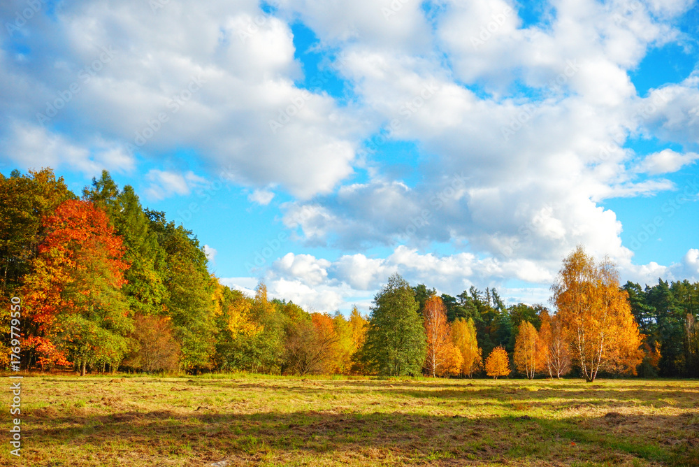 Picturesque autumn landscape with cloudy sky