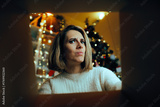 Puzzled Woman Looking Inside a Gift Box on Christmas. Frowning girlfriend being curious what she received for Christmas