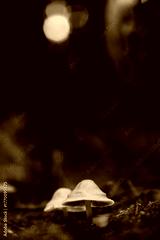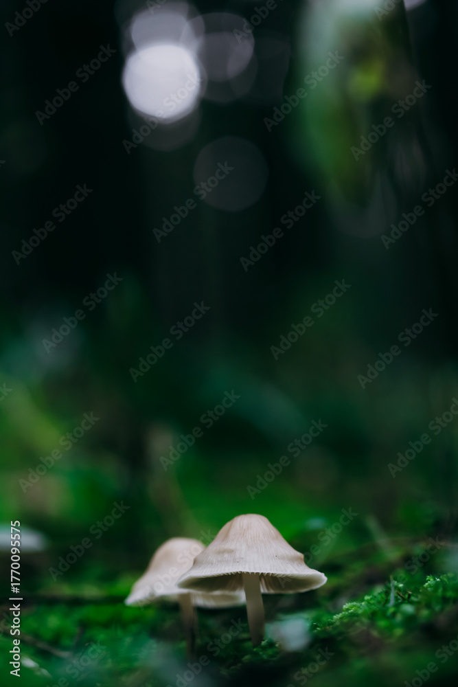 Beautiful fairy tale image with little mushrooms in autumn forest
