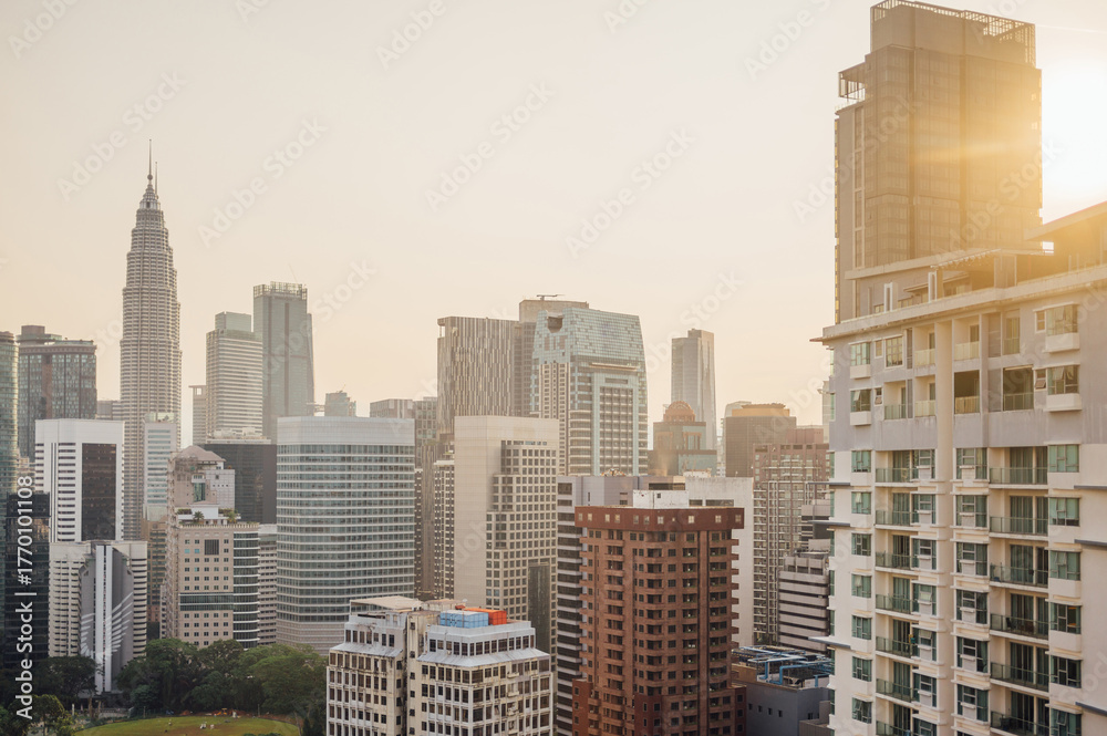 KLCC Kuala Lumpur City Skyline in Warm Evening Light, Malaysia
