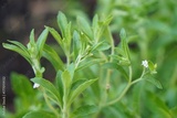 selective focus of Candy Leaf, Sugar Leaf, Sweet Herb of Paraguay, Sweet Honey Leaf, Stevia (Stevia rebaudiana Bertoni) in the morning light. Nature and floral background with copy space.