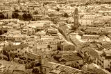 Panoramic aerial view of Verona, the city of love in Veneto, Italy, showing the Arena, red-tiled roofs, medieval streets, and the Adige River winding through the historic cityscape