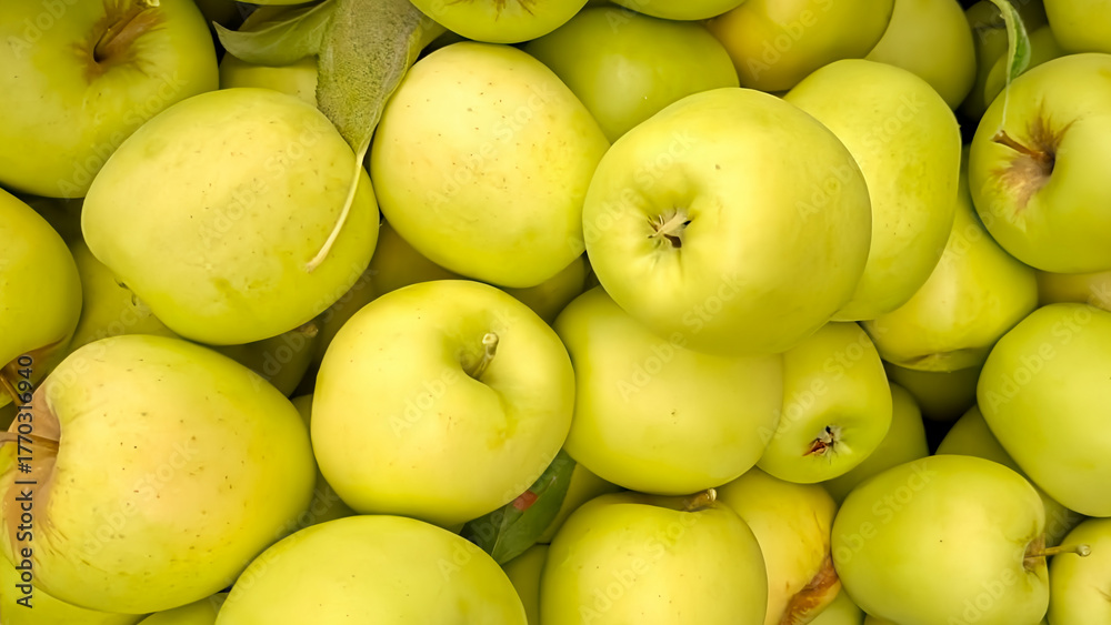 close-up of Ripe Red and green Apples Hanging On Branches In the field, Fresh ripe apple as background, top view Autumn day. Rural garden. In the frame ripe red apples on a tree.