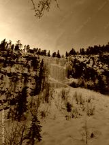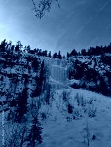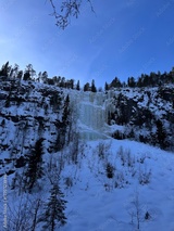 Breathtaking winter landscape with frozen waterfalls under a blue sky in the Korouoma Gorge in Finnish Lapland